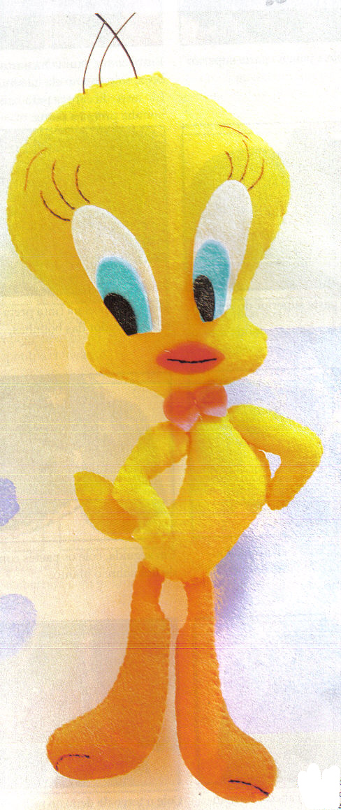 Para fazer você vai precisar dos materiais: feltro branco, preto, vermelho, laranja, amarelo, rosa e azul, linha para bordar, agulha, tesoura, arame fino, tinta para tecido preta, pincel fino, enchimento de silicone, alfinetes, ventosa, fio de náilon cola quente e molde.